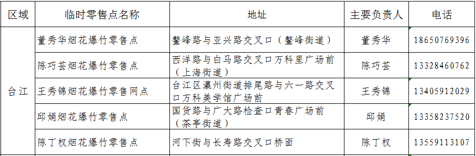 2022年春节888娱乐城(中国)官方网站 台江区烟花爆竹零售网点
