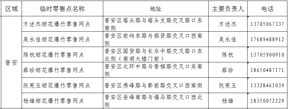 2022年春节888娱乐城(中国)官方网站 晋安区烟花爆竹零售网点