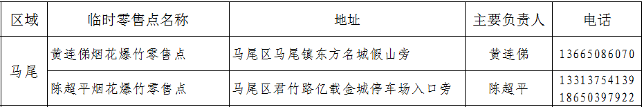 2022年春节888娱乐城(中国)官方网站 马尾区烟花爆竹零售网点