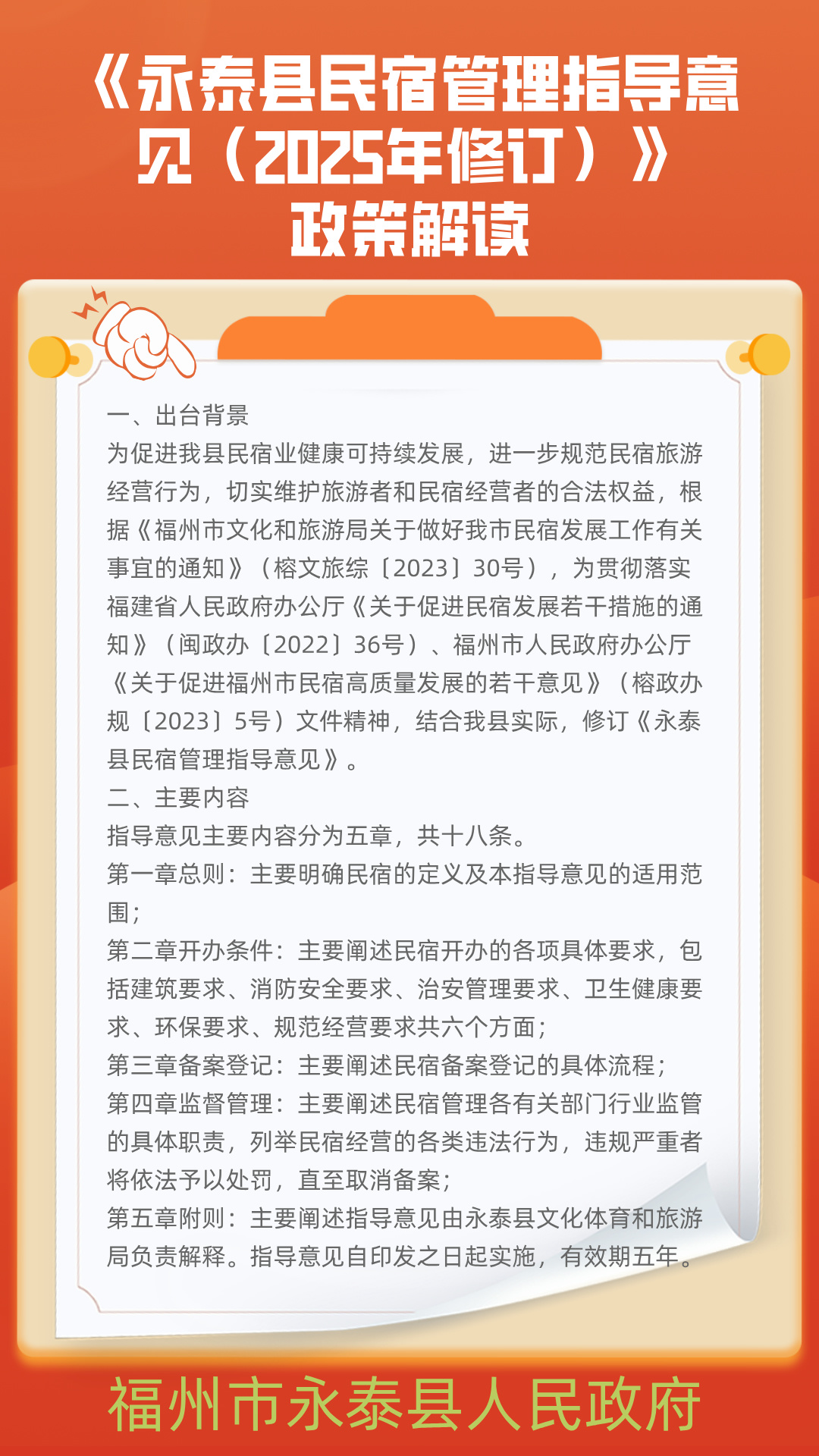 【图解】《永泰县民宿管理指导意见(2025年修订)》的政策解读