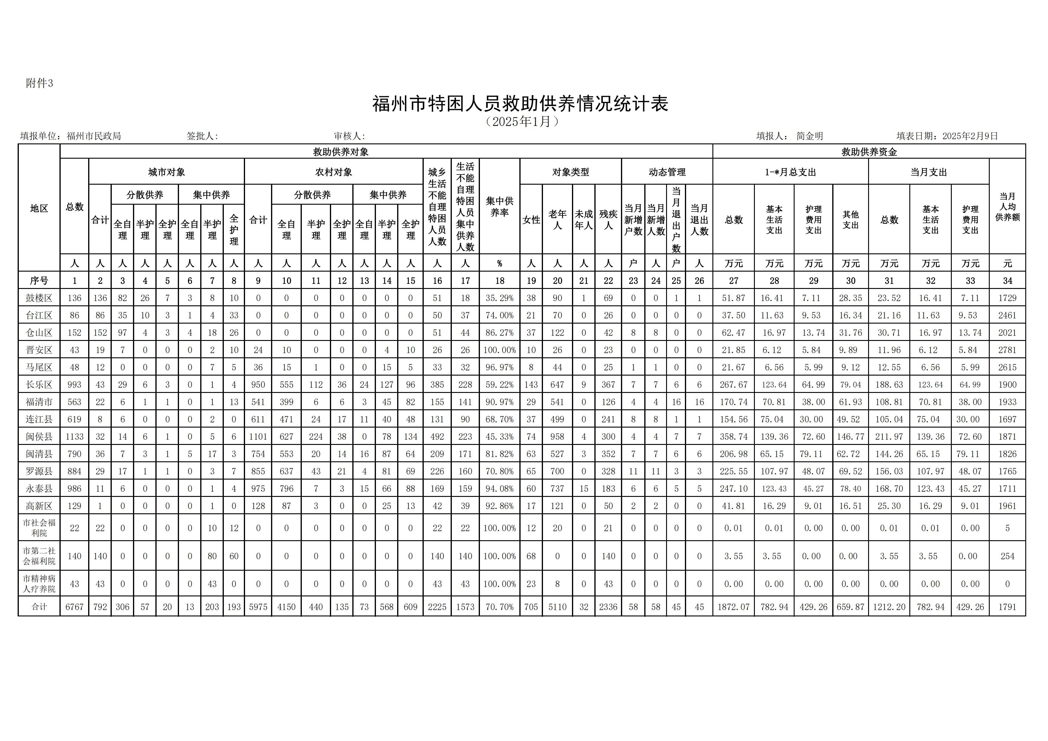 2025-1888娱乐城 特困人员救助供养情况统计表