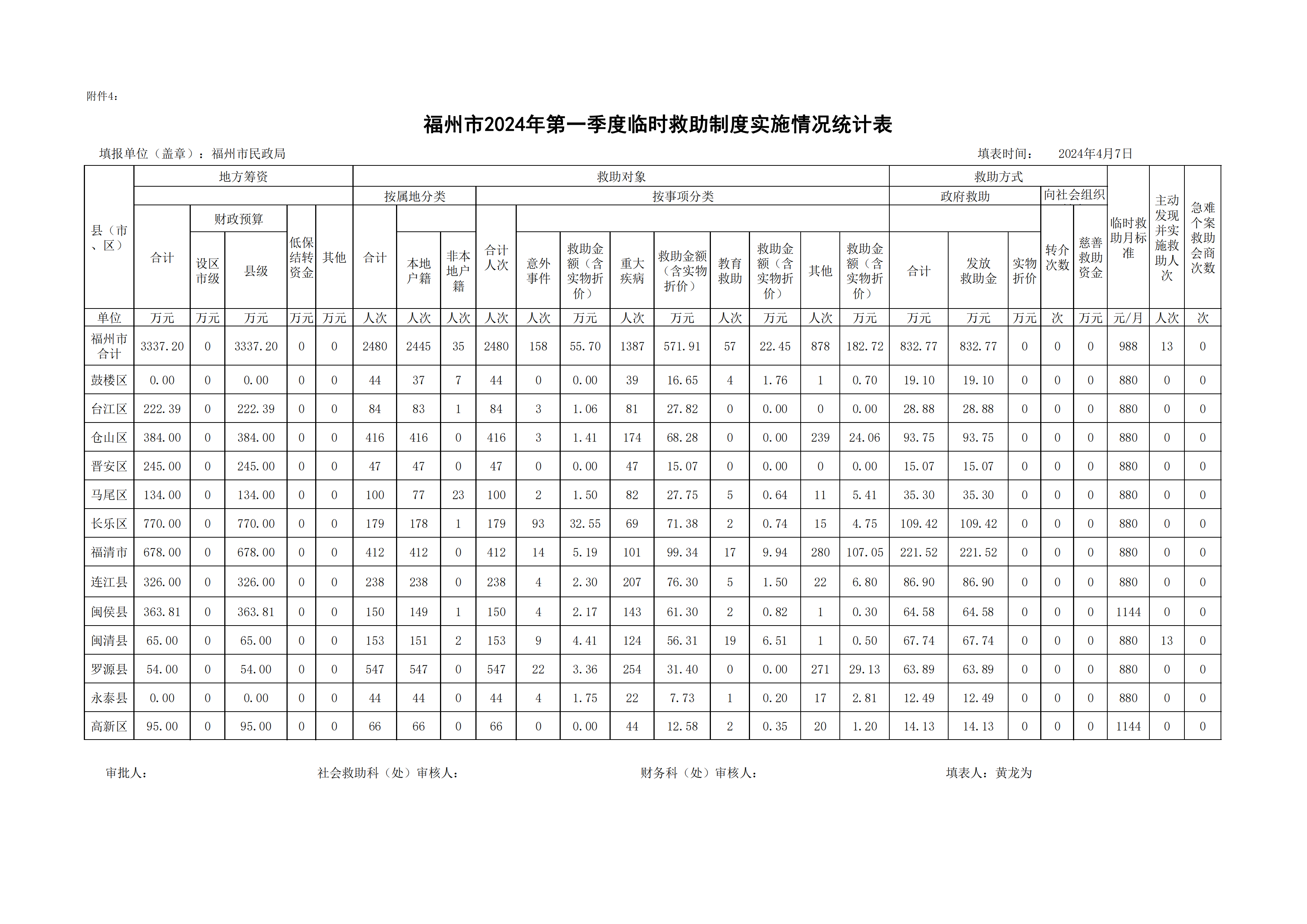 888娱乐城(中国)官方网站 2024年第一季度临时救助制度实施情况统计表