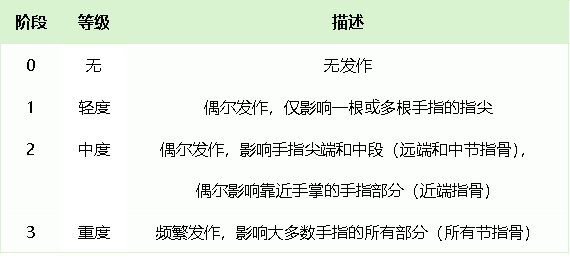 常用的分类方法是斯德哥尔摩工作组分类表(用于分类由寒冷引起的外周血管和感觉神经症状)。