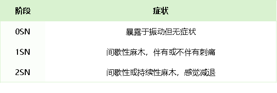 三、受手臂振动综合征影响的工人通常报告以下症状