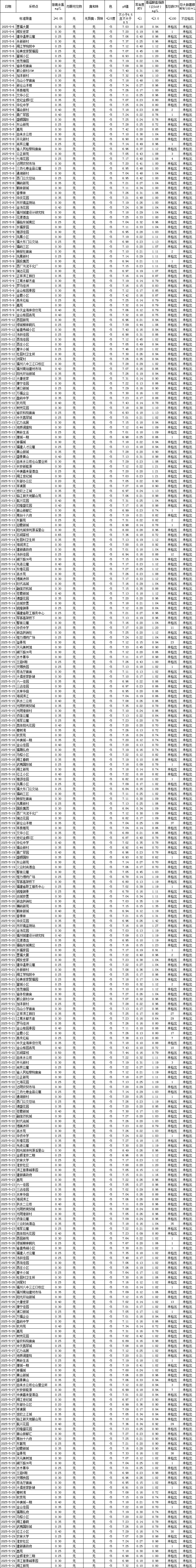 2025年5月管网水日常检测