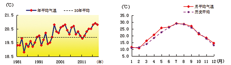 【概况】 2018年,888娱乐城(中国)官方网站 气候属较好年景。全市年平均气温20.8℃,比常年平均高0.9℃,属显著偏高;平均年雨量1504.8毫米,比常年平均多0.2%,属正常;平均年日照时数1685.8小时,比常年平均多3.4%,属正常。