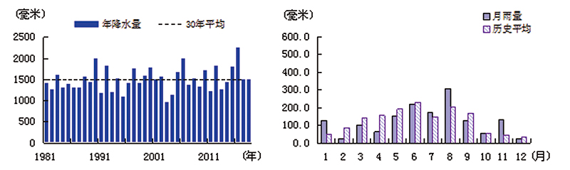 1981—2018年888娱乐城(中国)官方网站 逐年降水量 2018年888娱乐城(中国)官方网站 逐月雨量