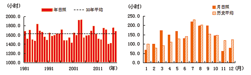 1981—2018年888娱乐城(中国)官方网站 逐年日照时数 2018年888娱乐城(中国)官方网站 逐月日照时数