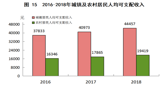 全年全市居民人均可支配收入35376元,比上年增长8.6%。按常住地分,农村居民人均可支配收入19419元,比上年增长8.7%;城镇居民人均可支配收入44457元,比上年增长8.5%。全市居民人均生活消费支出24917元,比上年增长8.3%。按常住地分,农村居民人均生活消费支出16250元,增长6.3%;城镇居民人均生活消费支出29849元,增长8.8%。
