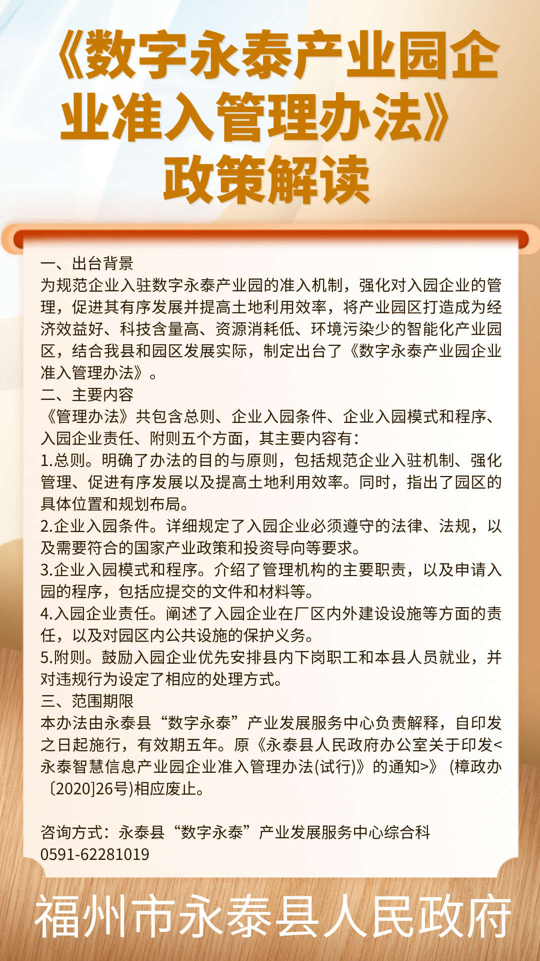 【图解】《数字永泰产业园企业准入管理办法》政策解读