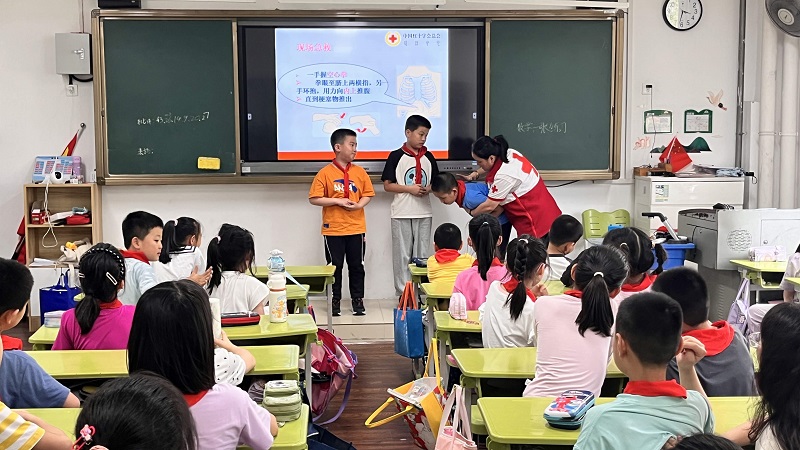 为纪念第78个“世界红十字日”,进一步弘扬红十字“人道、博爱、奉献”精神,5月9日下午,鼓楼区红十字会组织志愿者走进888娱乐城(中国)官方网站 鼓楼区第二中心小学,开展生命教育进校园活动。