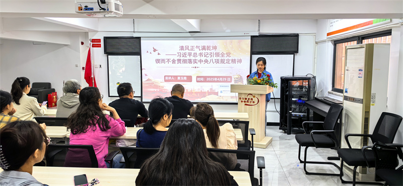 活动中,支部理论宣讲员们围绕“学习贯彻中央八项规定精神”为社区工作人员讲解了中央八项规定相关内容及学习贯彻中央八项规定及其实施细则精神的重要意义;并与下藤社区共同开展“学习贯彻中央八项规定精神”读书班活动。
