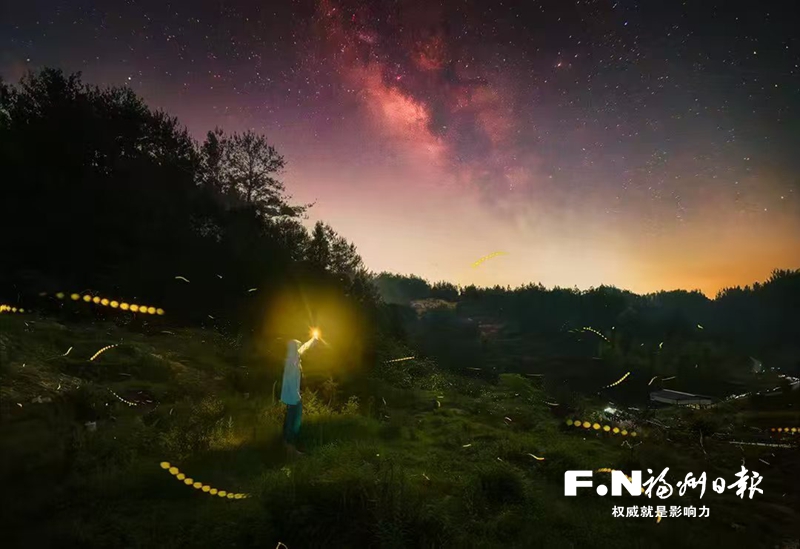 萤火虫在岭头村的山林间翩跹起舞,将蜿蜒山径幻化成流淌的星河。陈建信摄