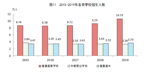 全年研究生教育招生10989人,在校研究生30822人。普通高等教育招生107017人,在校生340330人。中等职业教育招生33632人,在校生85918人。全市普通高中招生36976人,在校生105660人。初中招生84940人,在校生243783人。普通小学招生108094人,在校生589118人。特殊教育在校生1736人。学前教育在园幼儿277908人。市级示范园78所,省级达标中学74所。初中毕业升学率98.2%。
