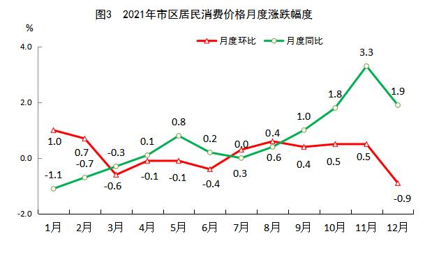 表1 2021年市区居民消费价格比上年涨跌幅度