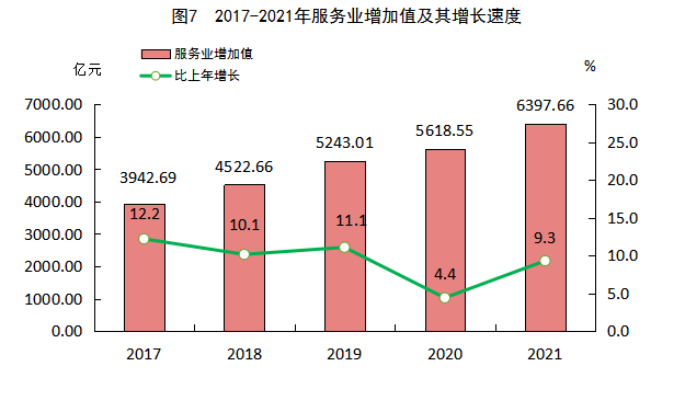 初步核算,全年实现地区生产总值11324.48亿元,比上年增长8.4%。其中,第一产业增加值637.03亿元,增长6.0%;第二产业增加值4289.80亿元,增长7.3%;第三产业增加值6397.66亿元,增长9.3%。第一产业增加值占地区生产总值的比重为5.6%,第二产业增加值比重为37.9%,第三产业增加值比重为56.5%。全年人均地区生产总值135298元,比上年增长7.2%。