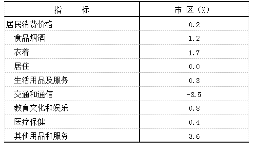 全年居民消费价格比上年上涨0.2%。