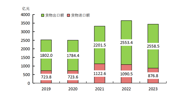 图6 2019-2023年货物进出口总额