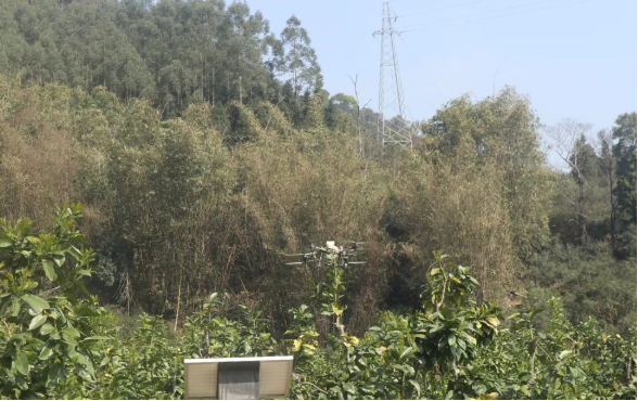 “嗡嗡嗡……”日前,在永泰县塘前乡荣柚富农场里,一株株柚子树郁郁葱葱,无人机在林地上空来回穿梭,将雾化肥料均匀喷洒在柚子树上。